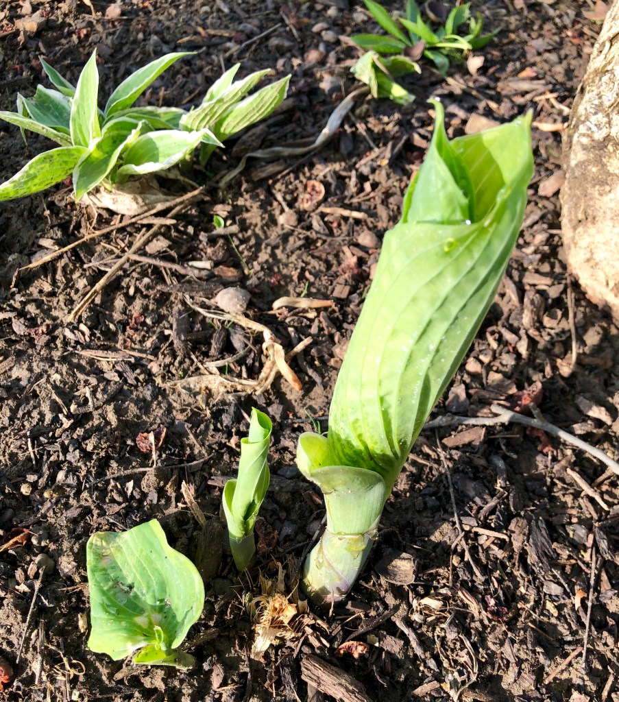 Last month, I wrote about grasses while spending all my days at home during the spring of the Covid-19 viral outbreak. Since then, between lawn mowing sessions and working from home, I awaited the return of my perrenial hosta plants from underground, which create a leafy landscape in the shady areas of my backyard. Now that we’ve reached the end of an academic year, summer is coming…and the hostas have spread their leaves!
