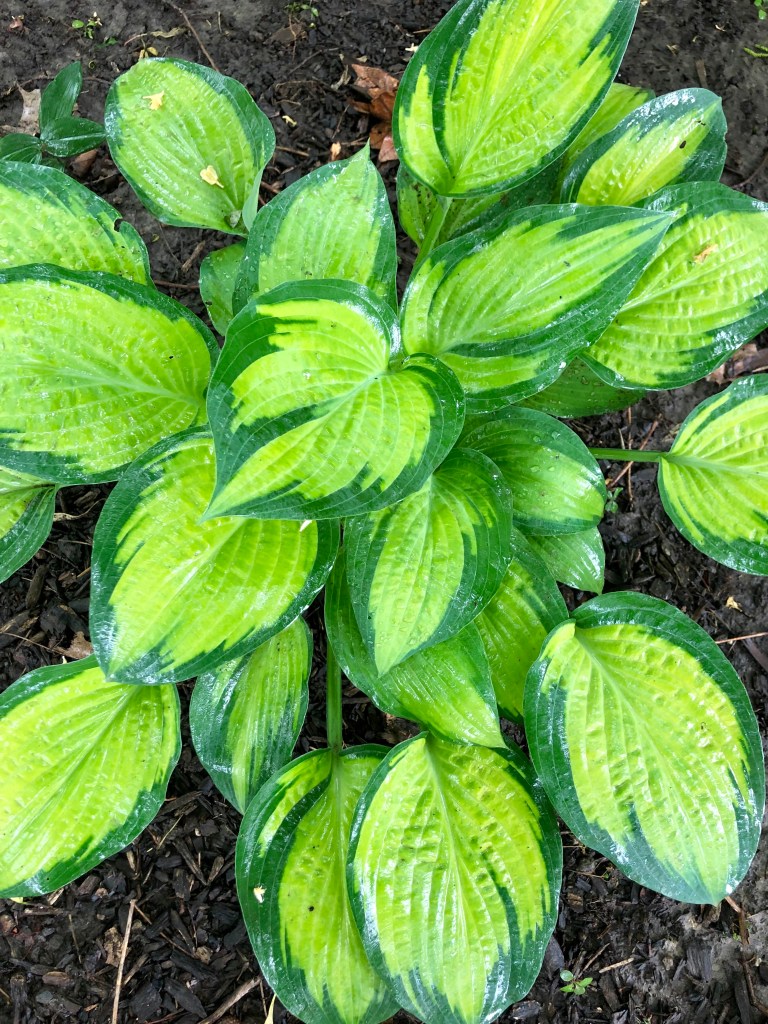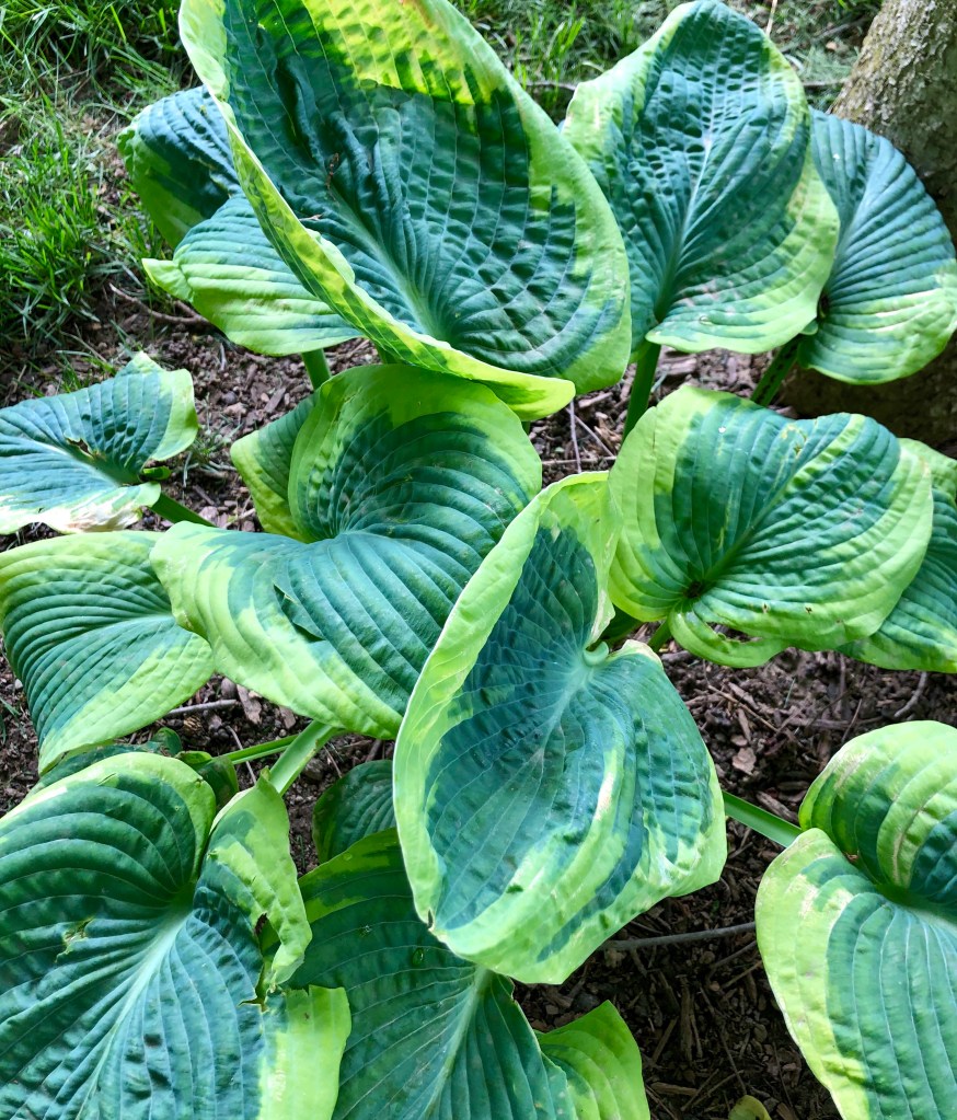 Hostas come in so many shapes, sizes, and colors because they’ve been bred for these different features over the years. Given their popularity in landscaping, hostas have proliferated as a really good example of plant leaf variation, and scientists have been studying the underlying causes for a long time (I found, for example, this characterization of a genetic trait for spots on hostas back in 1980). Some of this work might explain the variegation patterns; other mechanisms account for different sizes, leaf shapes, etc. But the importance of understanding plant variation expands exponentially when considering other traits in other species, such as food crops. Leaf variegation is interesting for its own sake, of course, but understanding chloroplast function and its impacts on overall food yield extends well beyond the boundaries of my backyard.